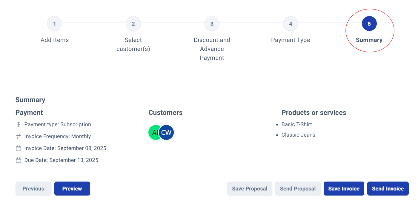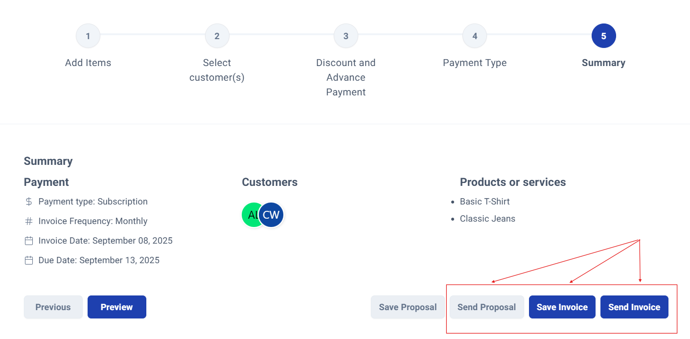 - Send Invoice: Immediately deliver the finalized invoice to your customer(s)