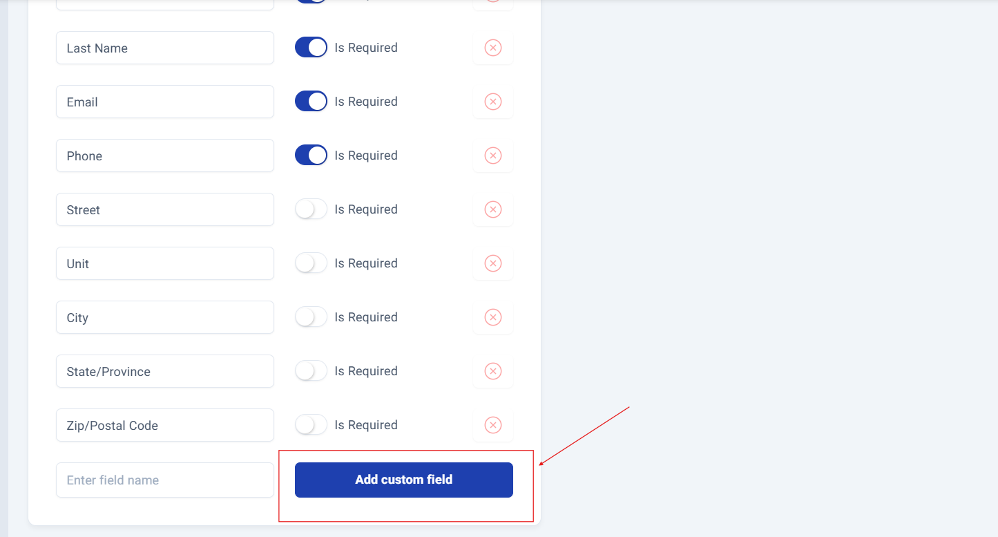 Need additional custom fields? No problem! Simply click the blue "Add Custom Field" button at the bottom of the form to expand your data collection capabilities.