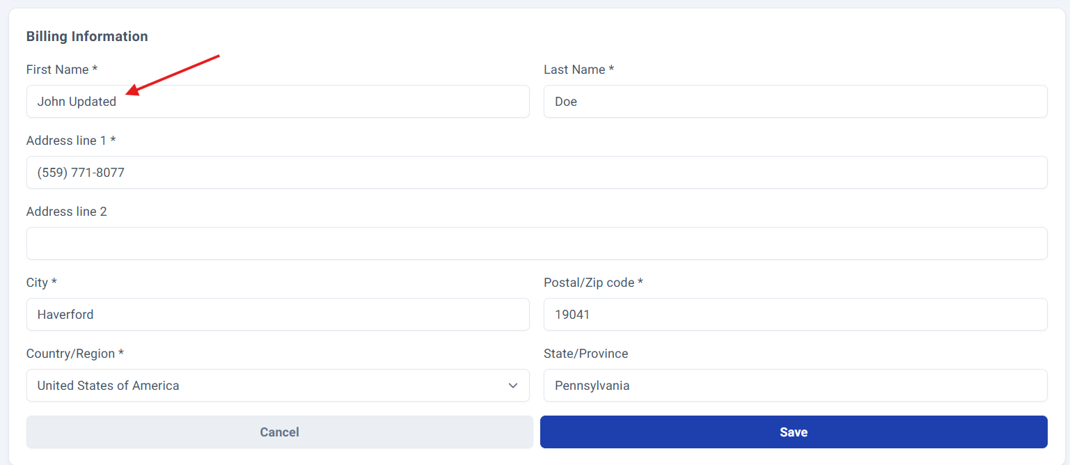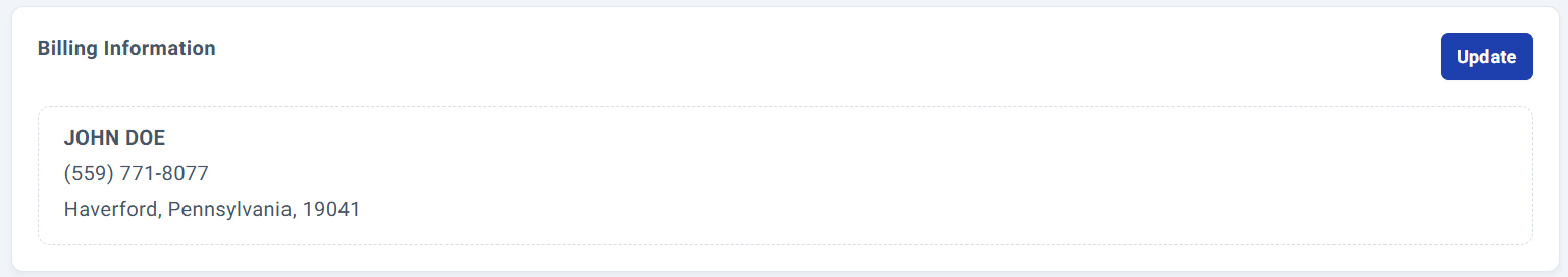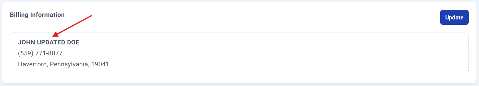 Your billing information has been successfully updated and is now active in your account. All future transactions will use your updated details.