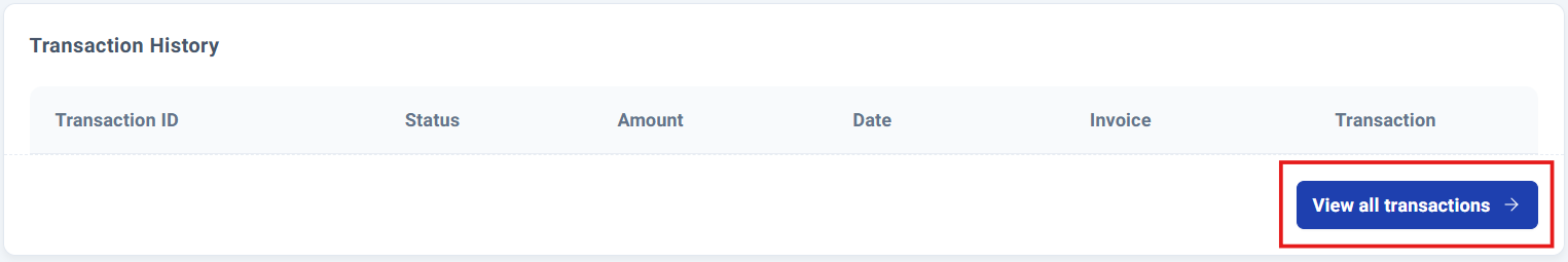 The dashboard displays your 10 most recent transactions by default. For complete payment history, simply click "View All Transactions" to access your full transaction record.