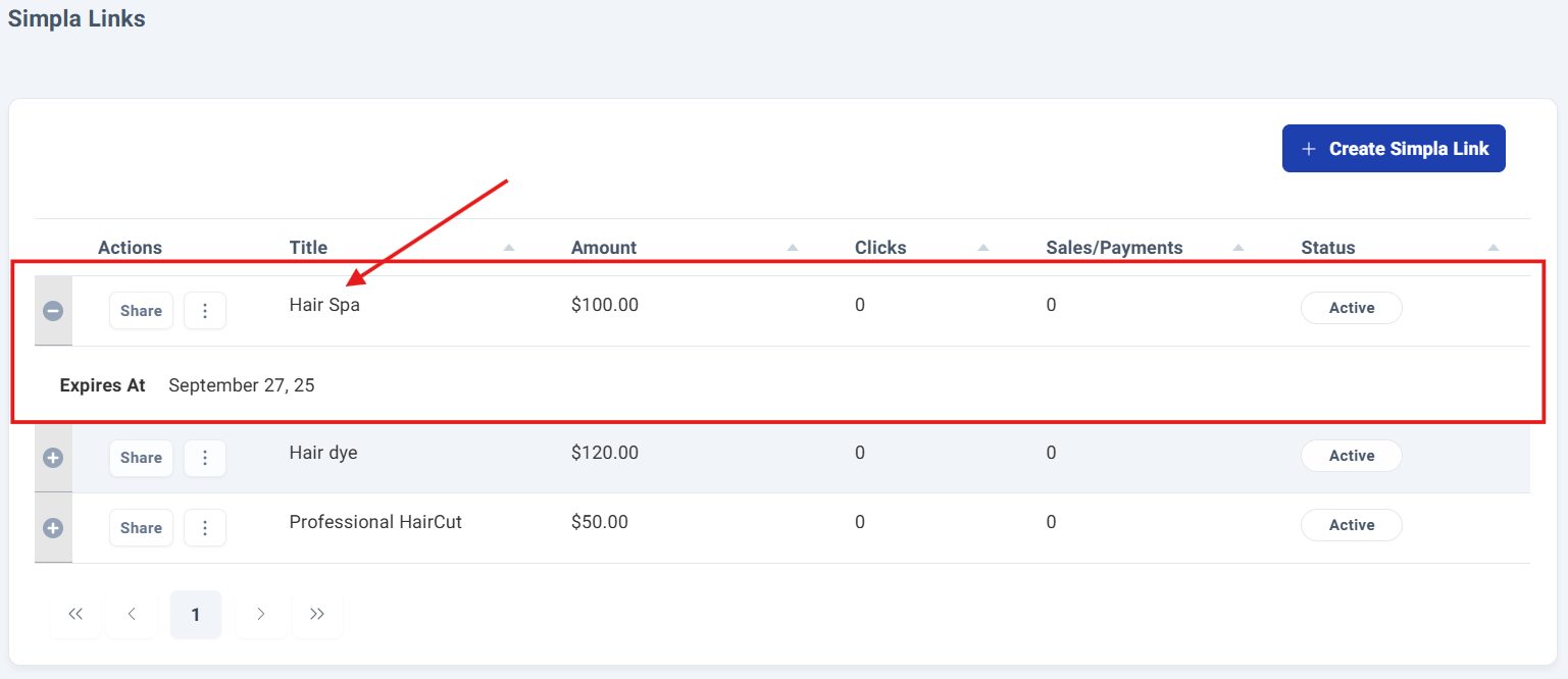 Step 3: Accesing to Your Simpla Link Details.