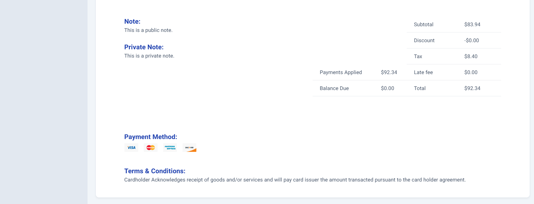 The circle with the X symbol reveals the balance paid and invoice type details for that specific invoice.