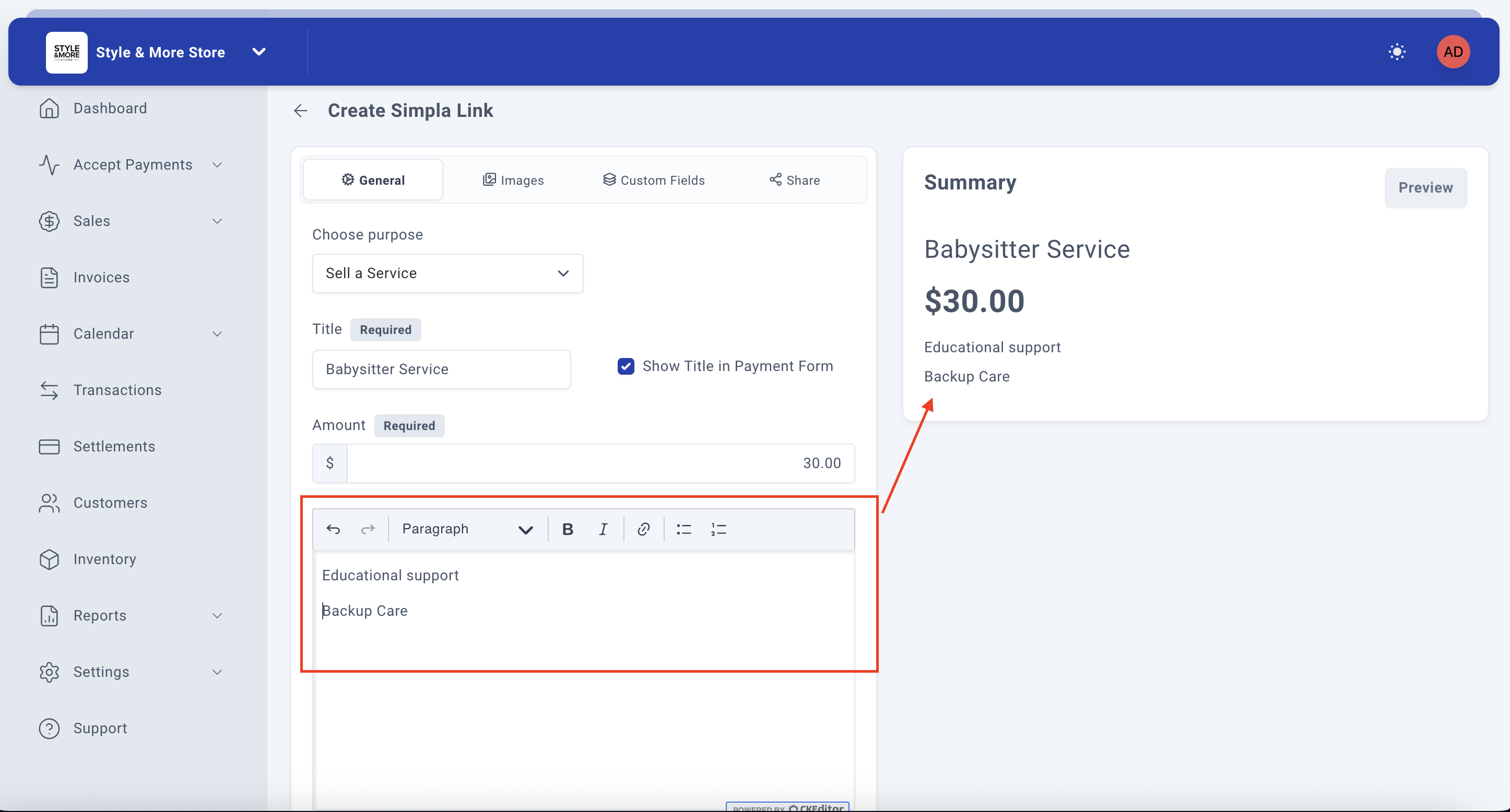 How to Create a SimplaLink to Sell a Service