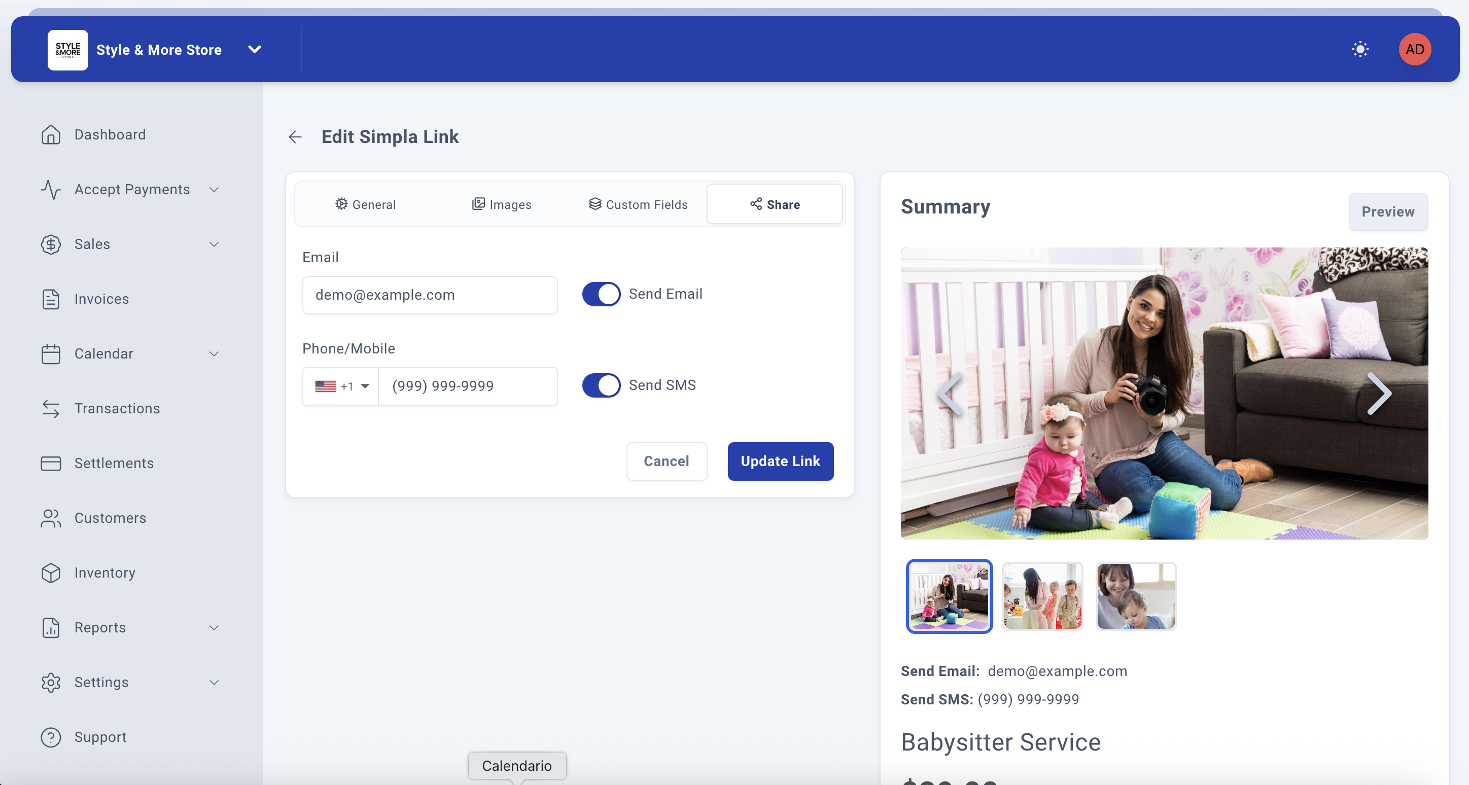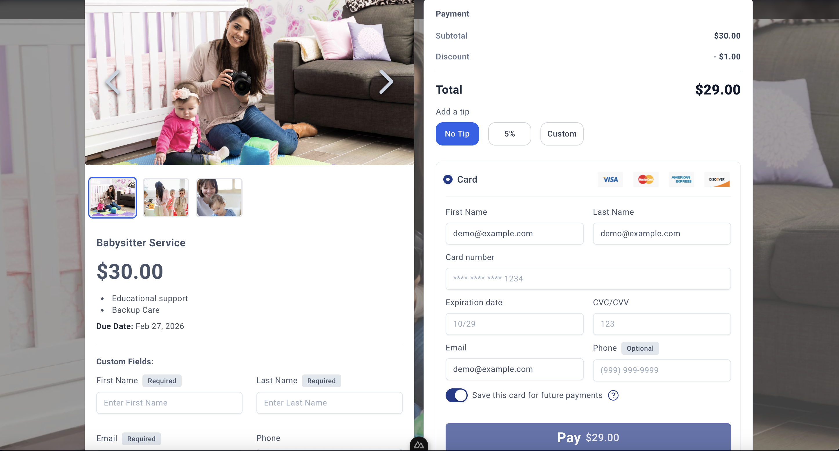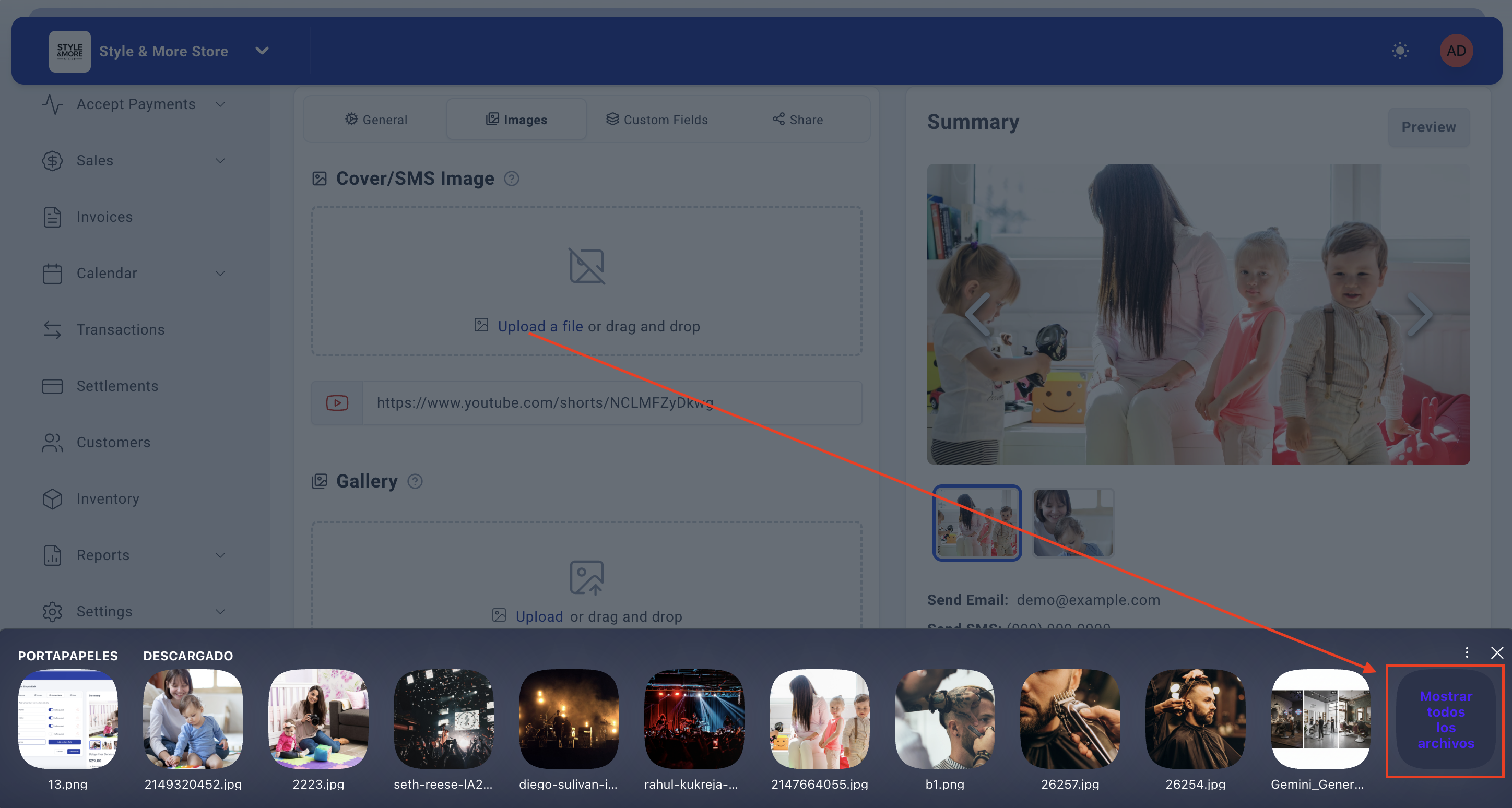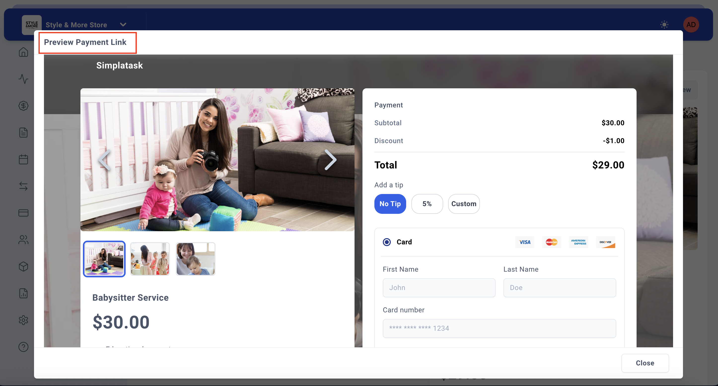 Note: Gallery images are displayed below the main cover image on your payment link, allowing customers to view multiple angles or examples of your service or product.
