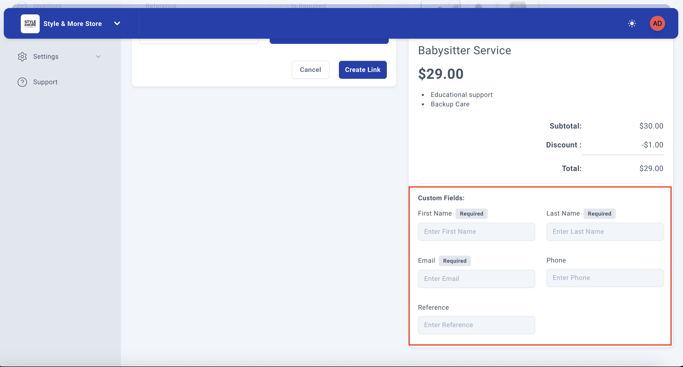 In this example, we'll add a field called "Reference" where customers can enter their reference number or booking code.