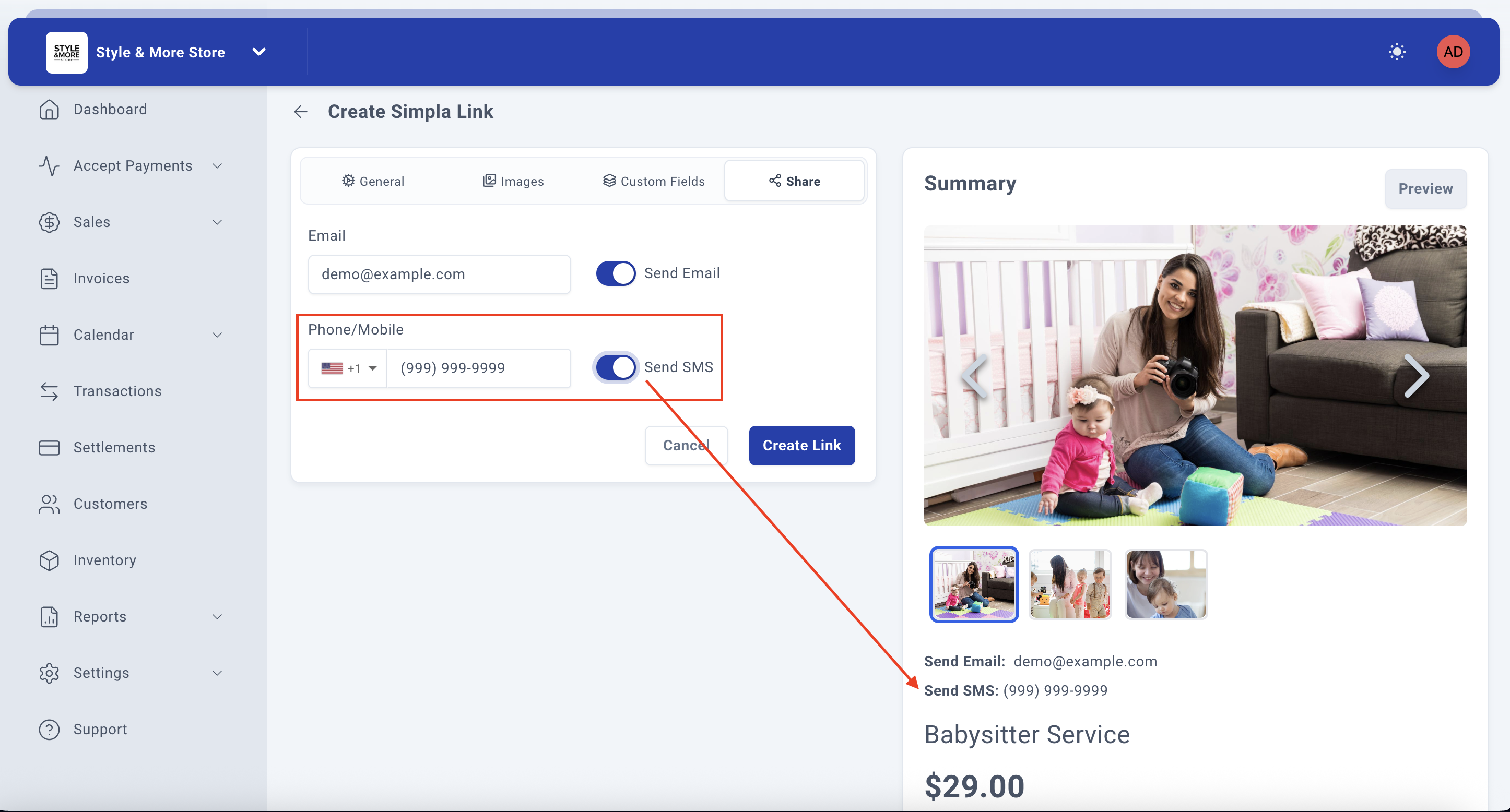 - Cover/SMS Image - The main image displayed on the payment link and in SMS messages